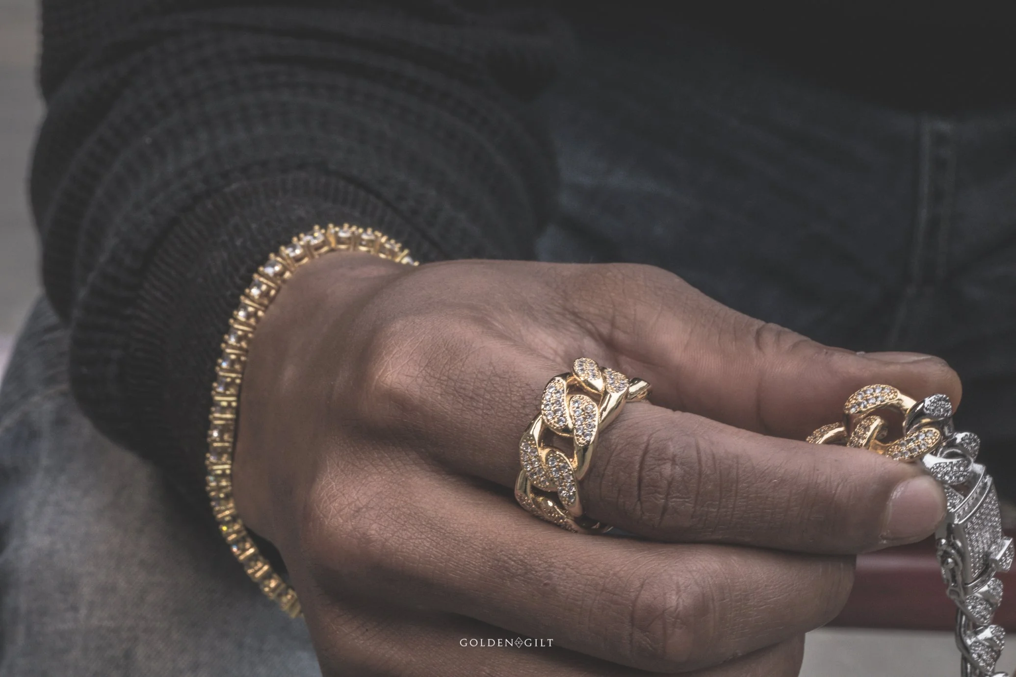 Studded Cuban Link Ring - 18K Gold Plated